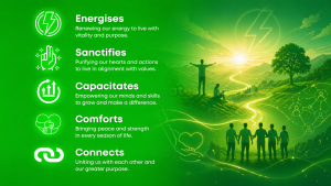 - Reflection: Which of the five roles of the Holy Spirit (Energiser, Sanctifier, Capacity-builder, Comforter, Connector) do you need most in your life right now?
